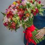 Альстромерия белая – 21 шт.Альстромерия розовая – 20 шт.Альстромерия красная – 20 шт.Альстромерия желтая – 20 шт.Альстромерия сиреневая – 20 шт.Атласная лента – 1 шт.