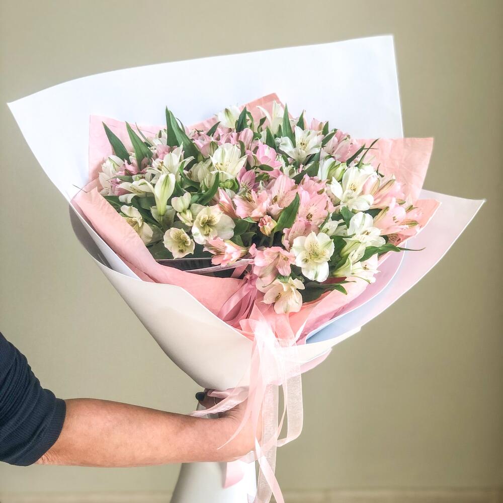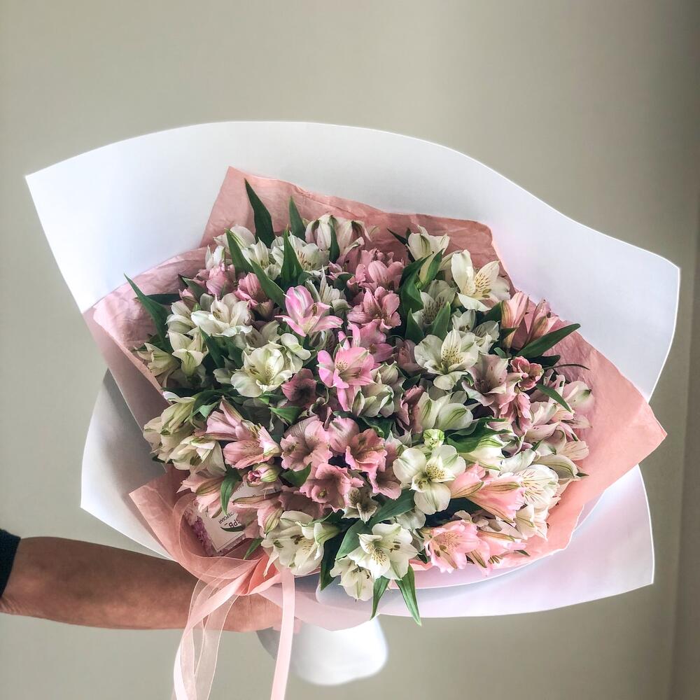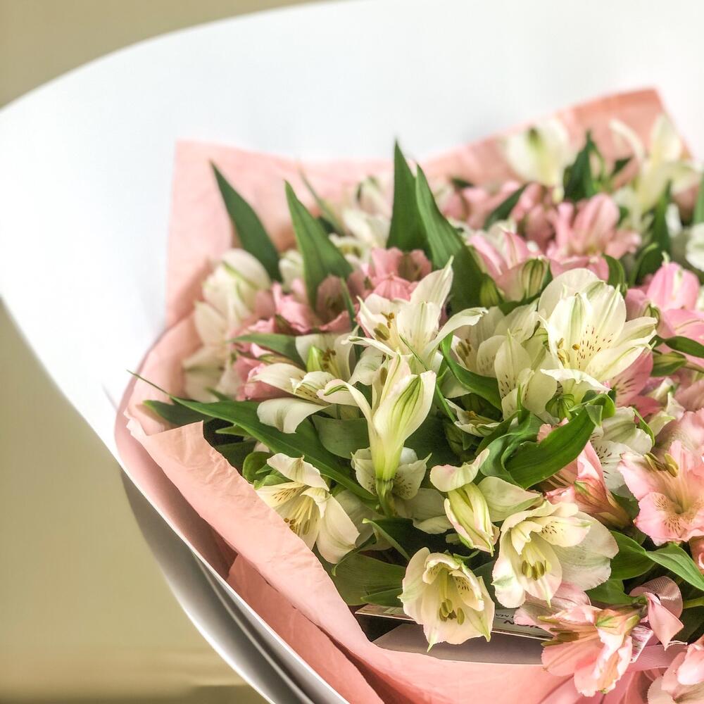 Альстромерия – 23 шт.Дизайнерская упаковка – 1 шт.Лента атласная – 2 шт.