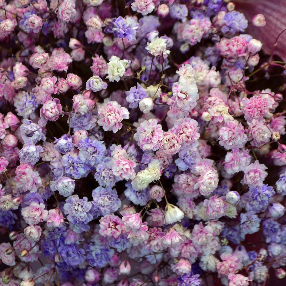 “Сиреневый туман” – композиция из гипсофилы в шляпной коробке