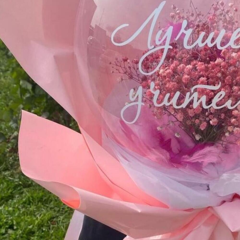 Гипсофила – 2 шт.Лента атласная – 2 шт.Пленка матовая – 6 шт.наклейка фирменная – 1 шт.шар бабл – 1 шт.