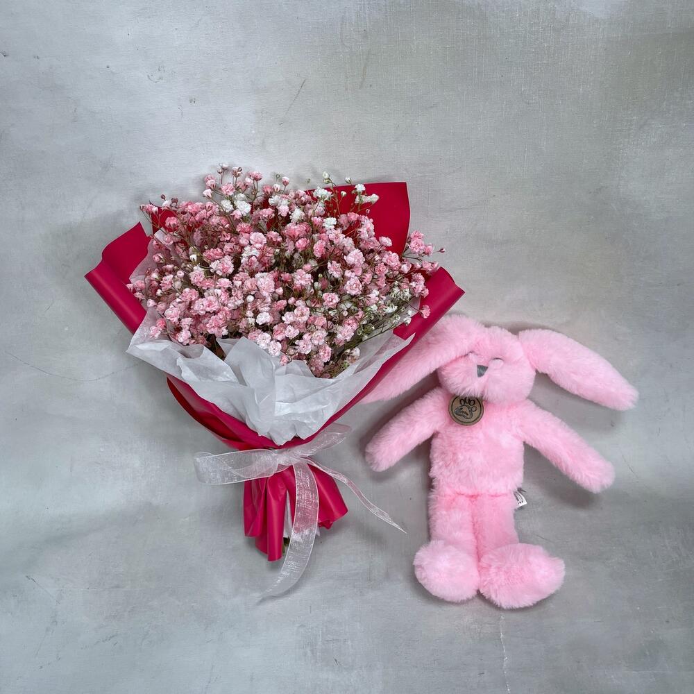 Гипсофила – 3 шт.Упаковка – 1 шт.игрушка зайчонок lapkin – 1 шт.Пакет крафт – 1 шт.