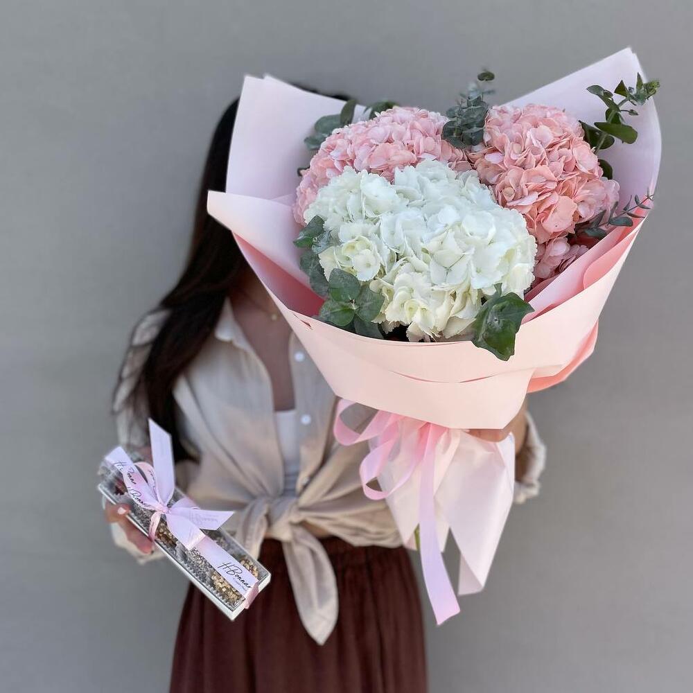 Гортензии, Кустовые розы, Лизиантусы, Пионовидные розы, Розы