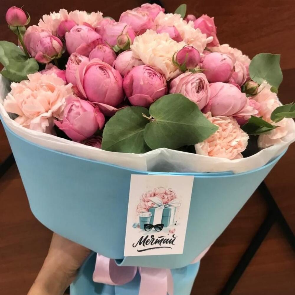 Гвоздики, Кустовые розы, Лизиантусы, Пионовидные розы, Розы