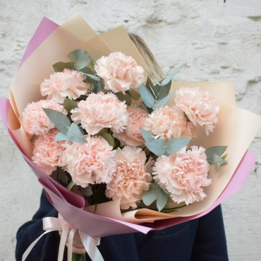 Гвоздики, Лизиантусы, Розы, Тюльпаны