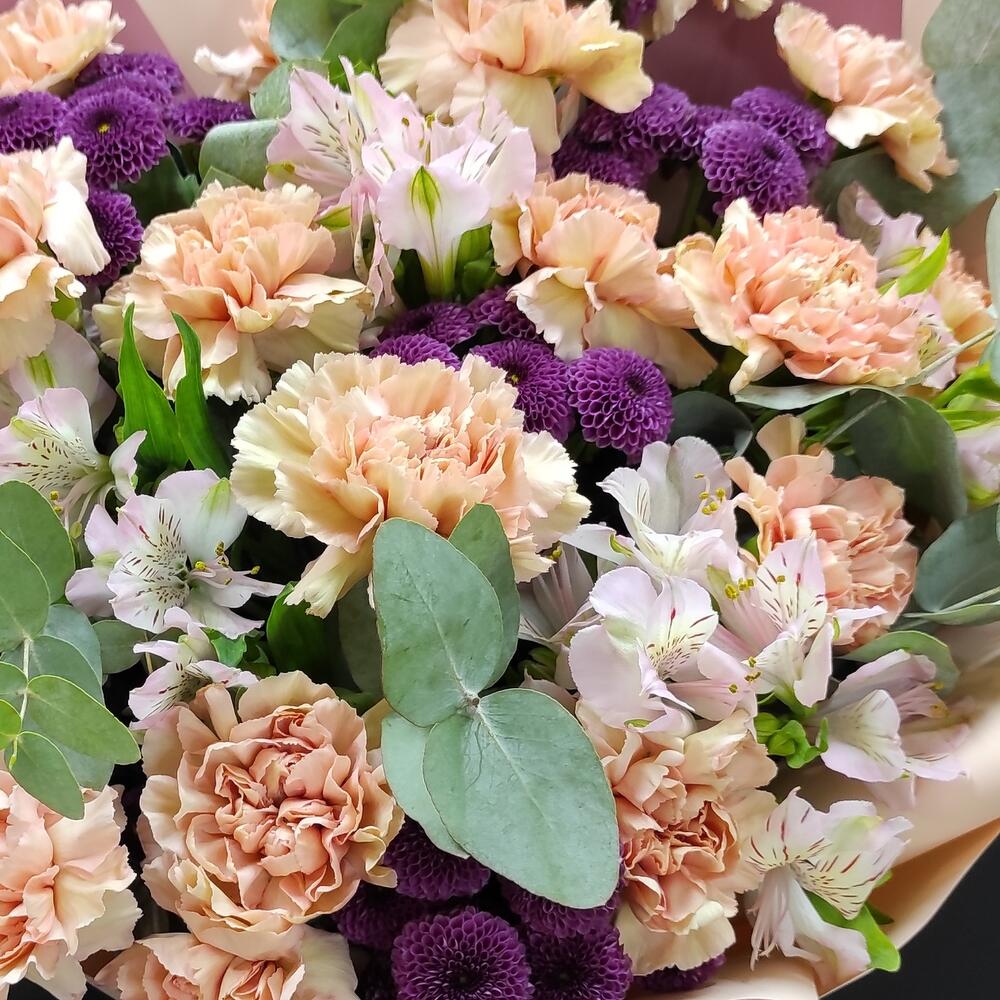 11 нежных гвоздик с эвкалиптом
