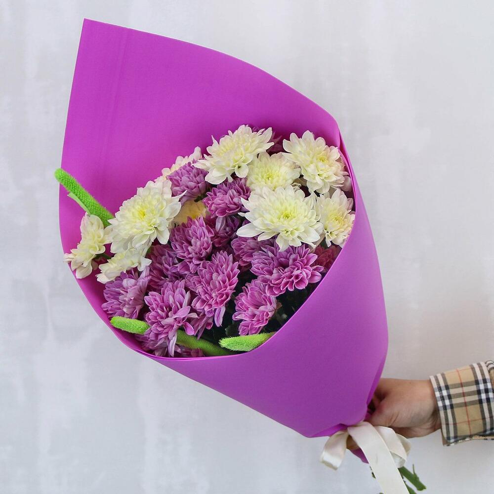 Хризантема кустовая – 5 шт.вставка декоративная – 3 шт.Фоамиран – 1 шт.Лента – 1 шт.