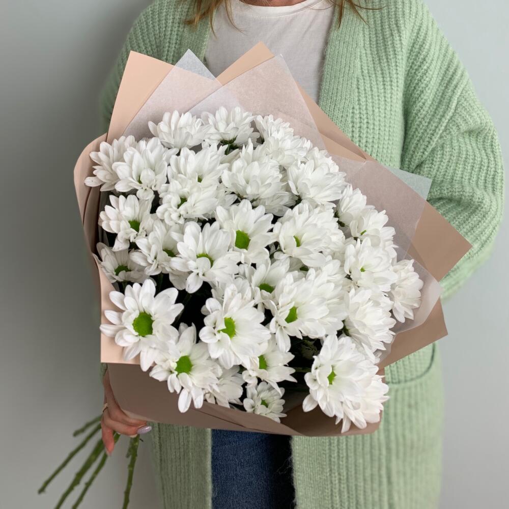 Лента – 1 шт.Хризантема кустовая – 7 шт.Пленка матовая – 1 шт.