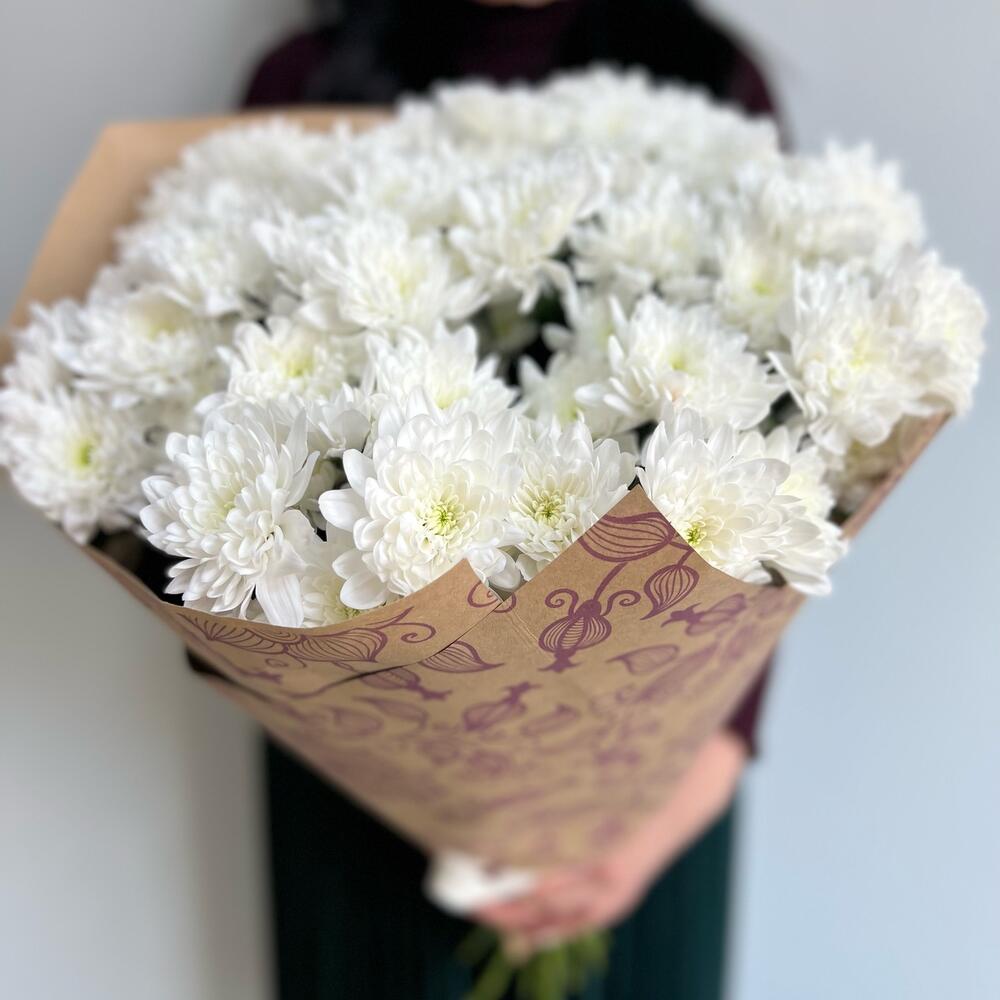 Крафт упаковка – 3 шт.хризантемы кустовые – 11 шт.