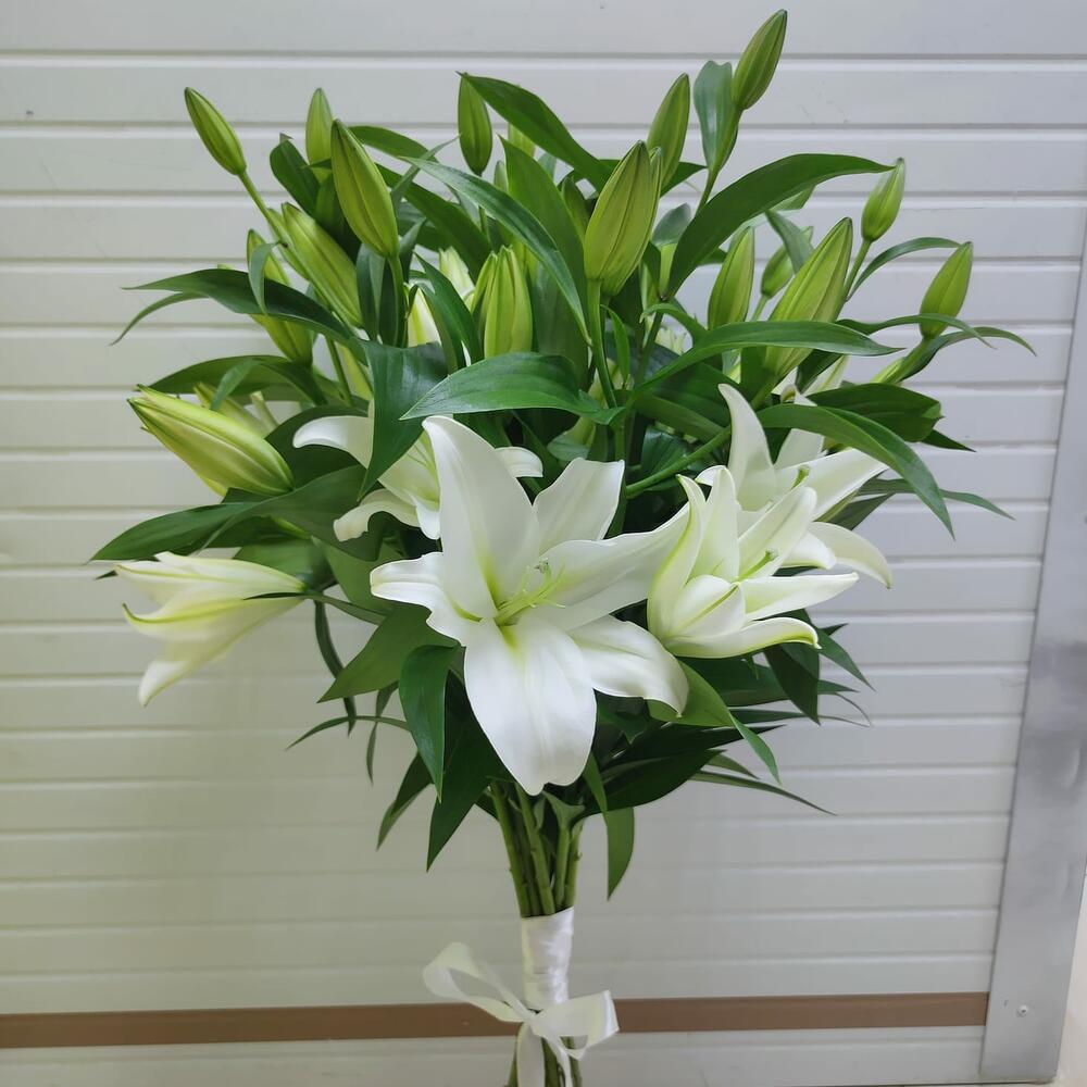 лилия белая ориентальная – 9 шт.Лента атласная – 1 шт.