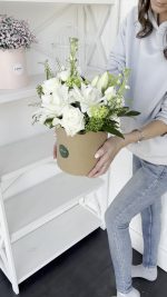 “Сиреневый туман” – композиция из гипсофилы в шляпной коробке