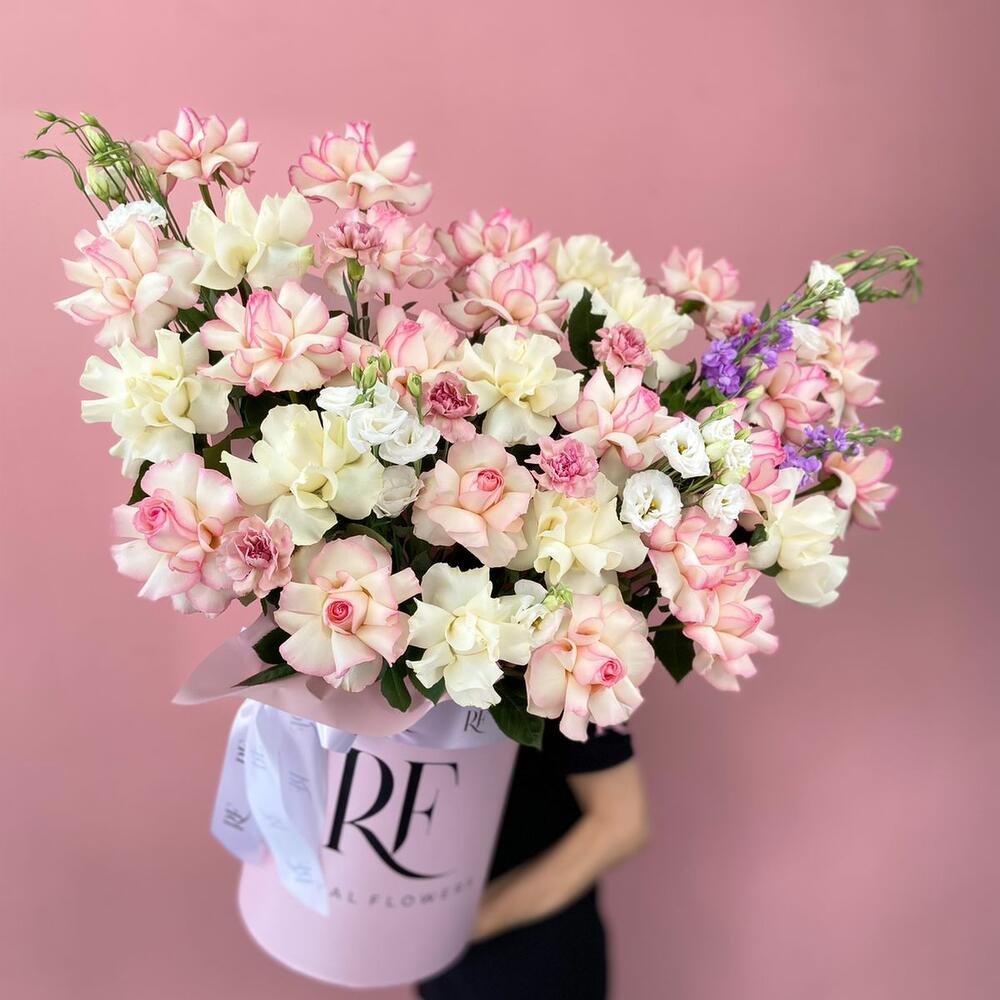 Альстромерии, Гортензии, Кустовые розы, Лизиантусы, Розы, Хризантемы