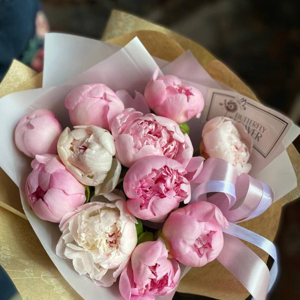 Букет из 11 розовых и белых пионов