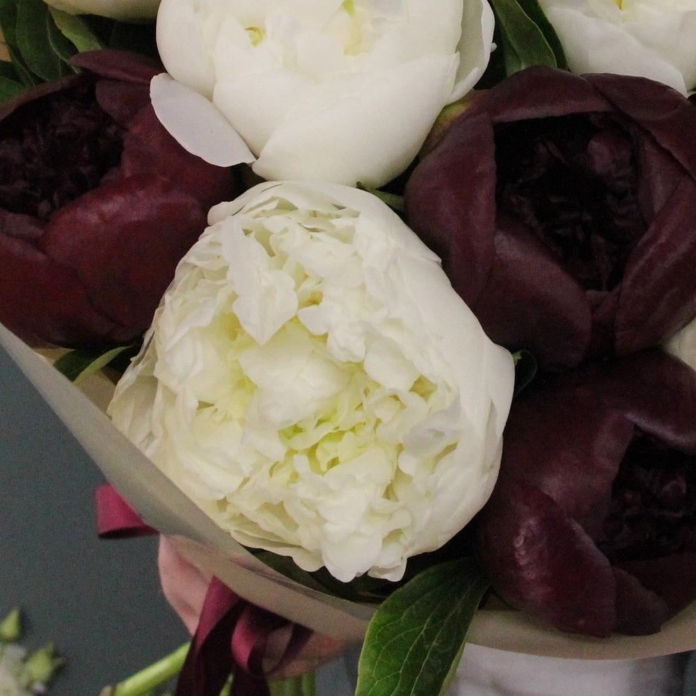 Пион – 11 шт.Лента атласная – 2 шт.Упаковка дизайнерская – 3 шт.