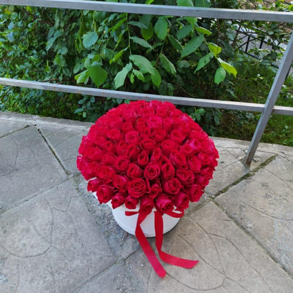 Метки: 101 роза, от 5000 руб, цветы в коробке