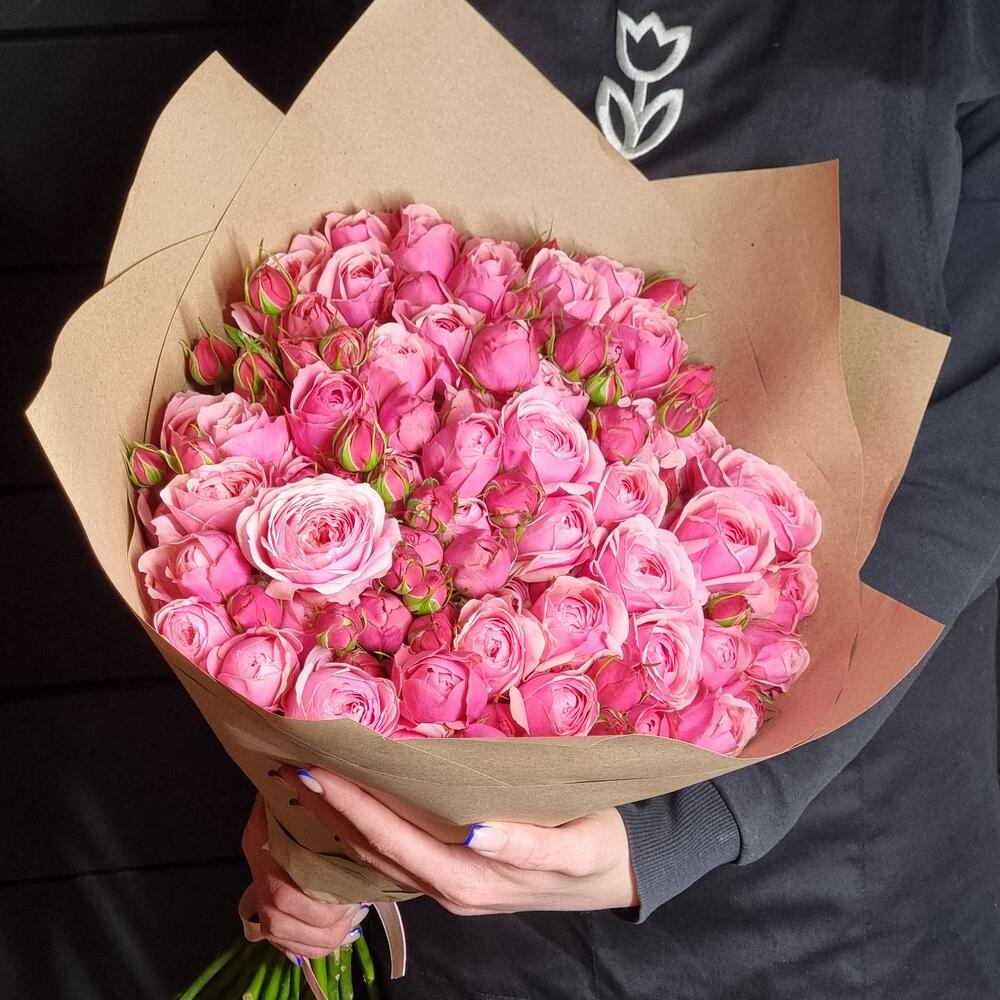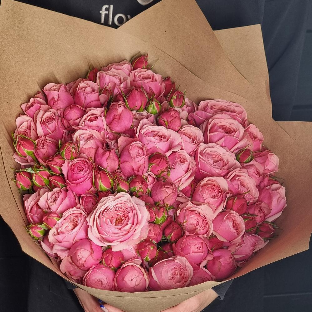 15 пионовидных кустовых роз в букете