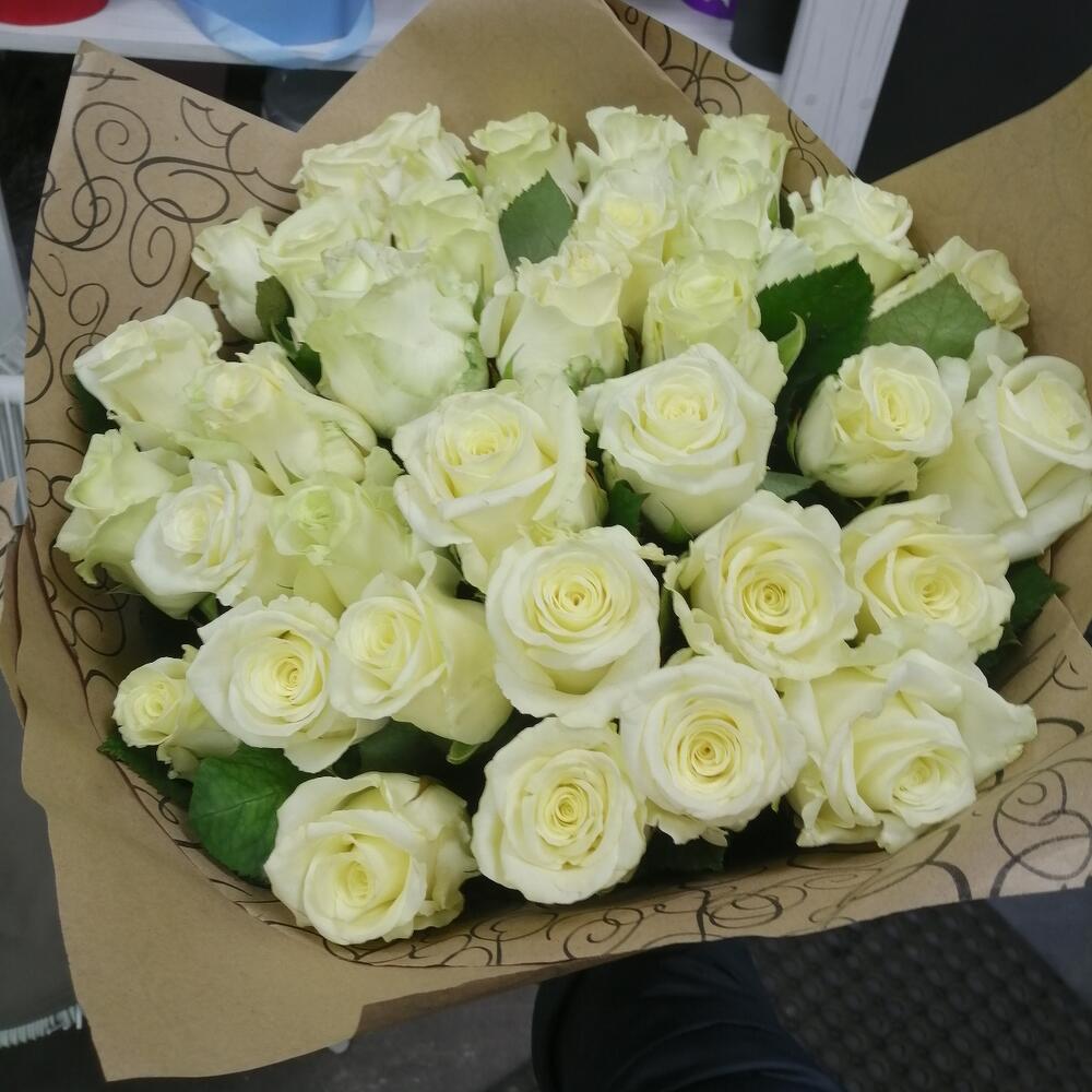 Белые розы – это чистота, любовь и надежда. Не зря белая роза считается символом Девы Марии в христианской религии. Такой букет лучше всяких слов скажет о ваших чувствах. Невинном и чистом. Букет из 35 белых роз Аваланш будет эффектным подарком для девушки. Все восхищаются чистой и красотой белых роз. У роз Аваланш достаточно большой бутон с оттенком зеленого цвета у стебля. Идете на первое свидание? Обязательно купите букет из 35 роз Аваланш. Она по достоинству оценит такой подарок.