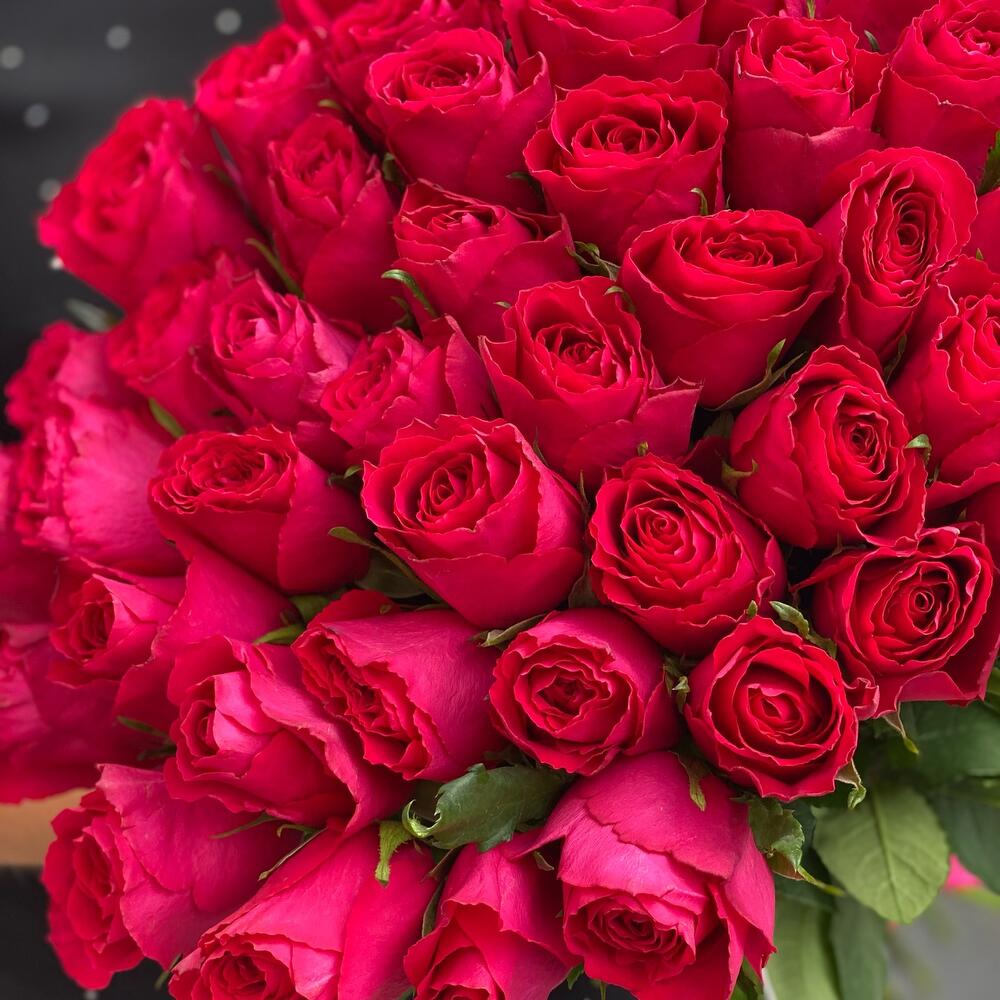 Лента атласная – 1 шт.Упаковка дизайнерская – 1 шт.роза кения 50 см – 51 шт.