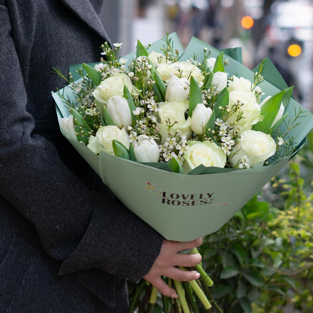 Кустовые розы, Пионовидные розы, Розы, Сухоцвет, Тюльпаны