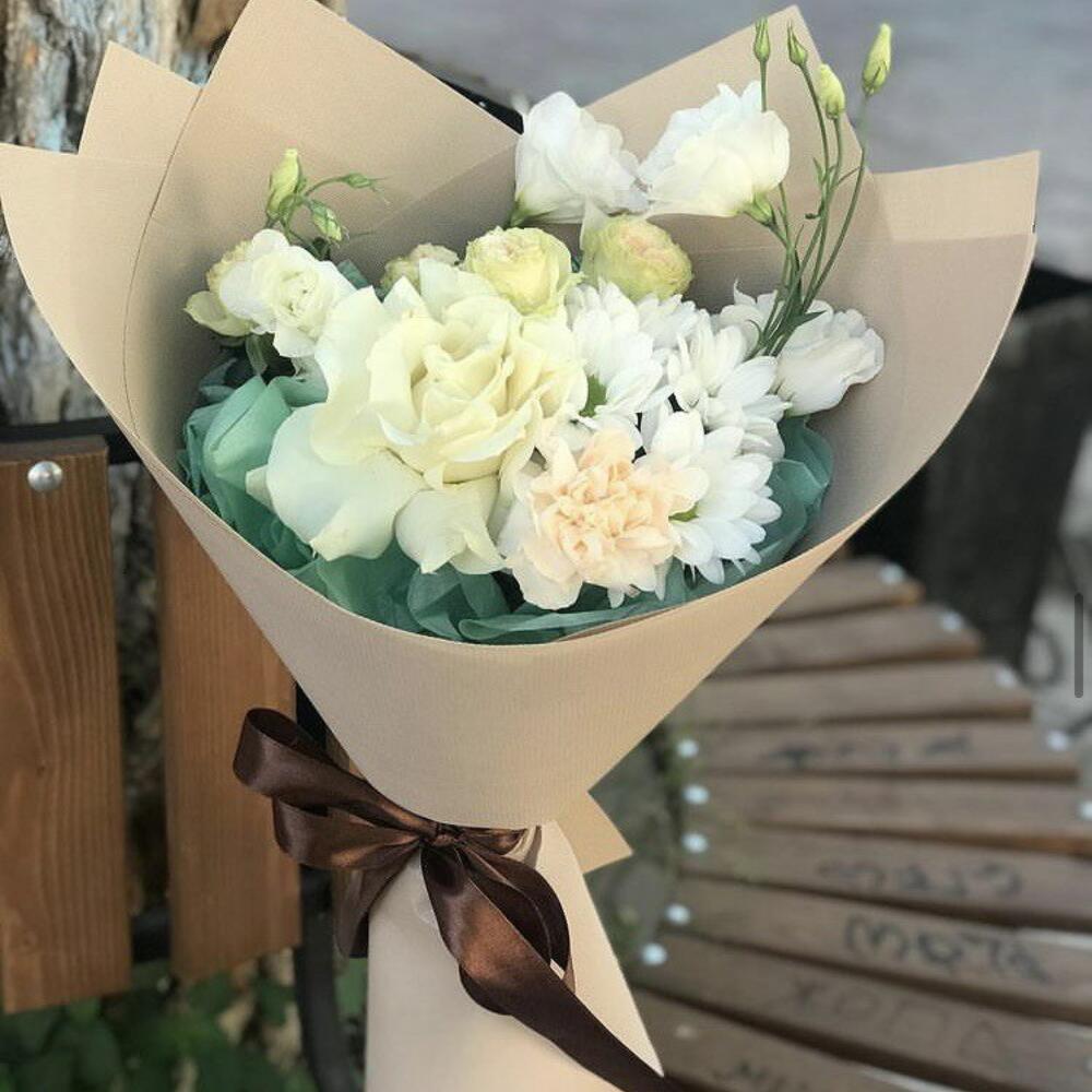 Альстромерии, Гвоздики, Кустовые розы, Лизиантусы, Розы, Хризантемы