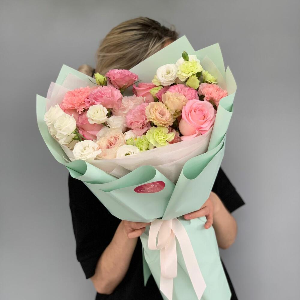 Альстромерии, Кустовые розы, Лизиантусы, Пионовидные розы, Розы, Ромашки