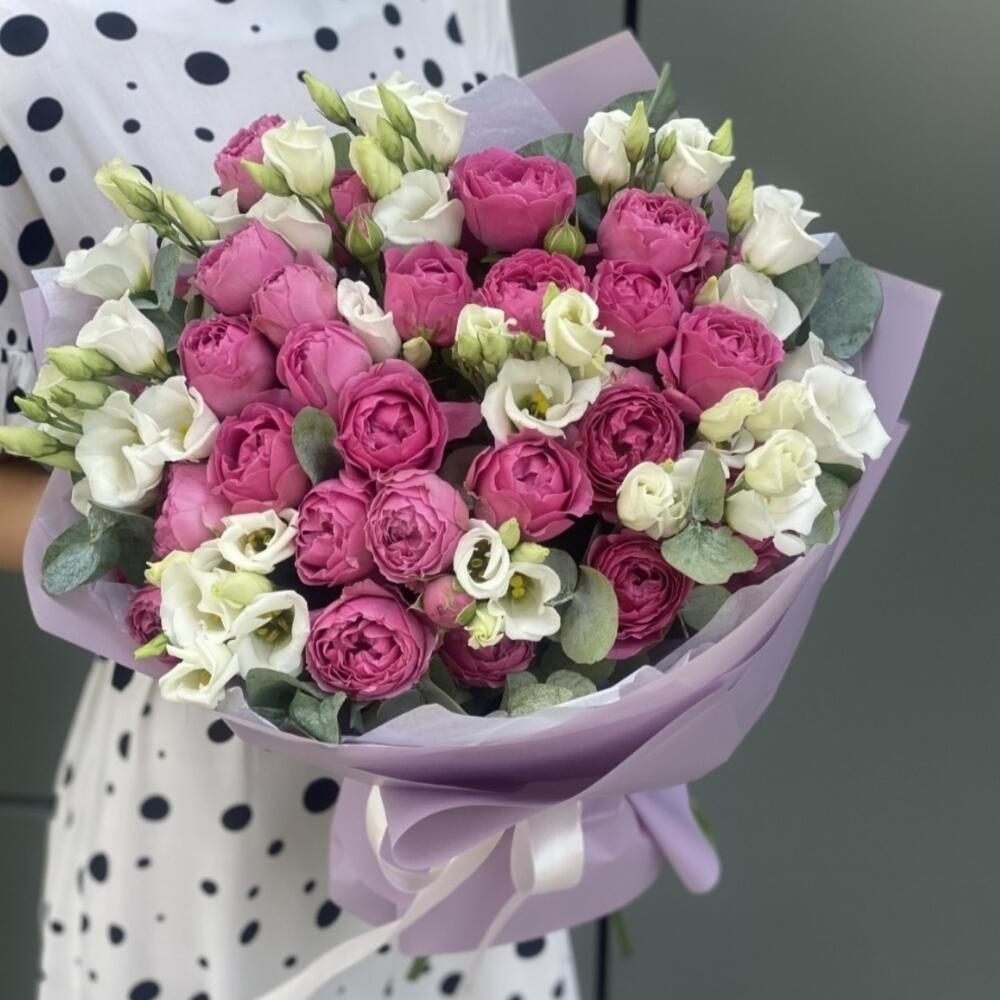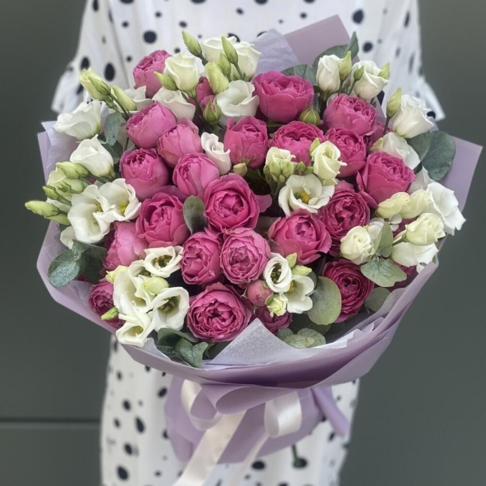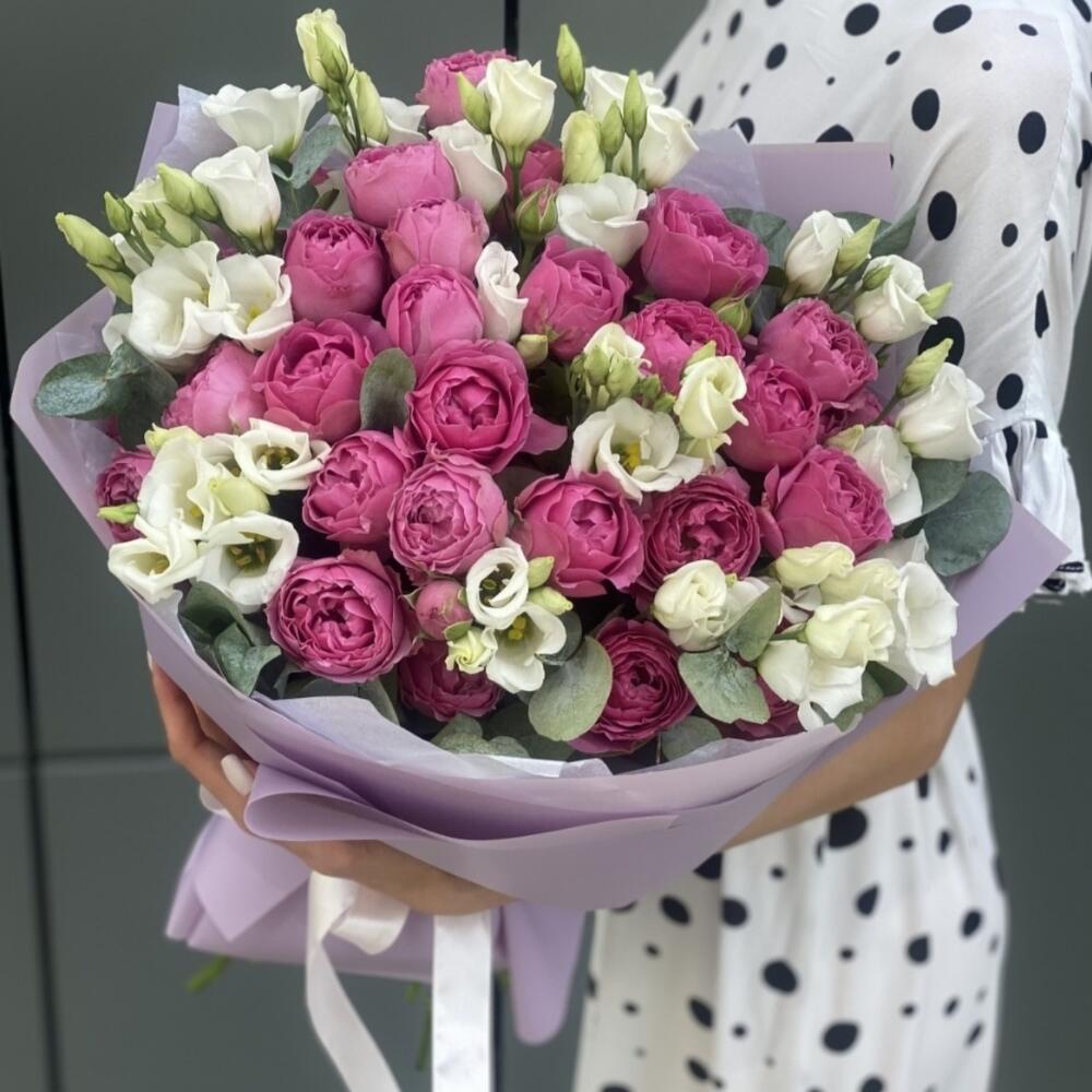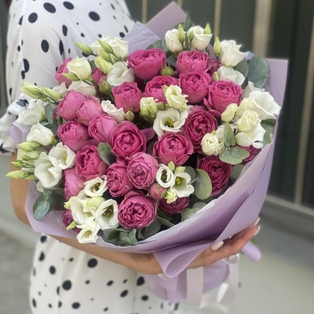 Гвоздики, Лизиантусы, Розы, Тюльпаны
