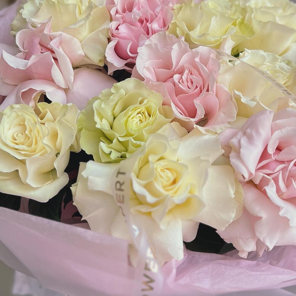 Букет из 15 французских роз “WHITE PINK MONDIAL