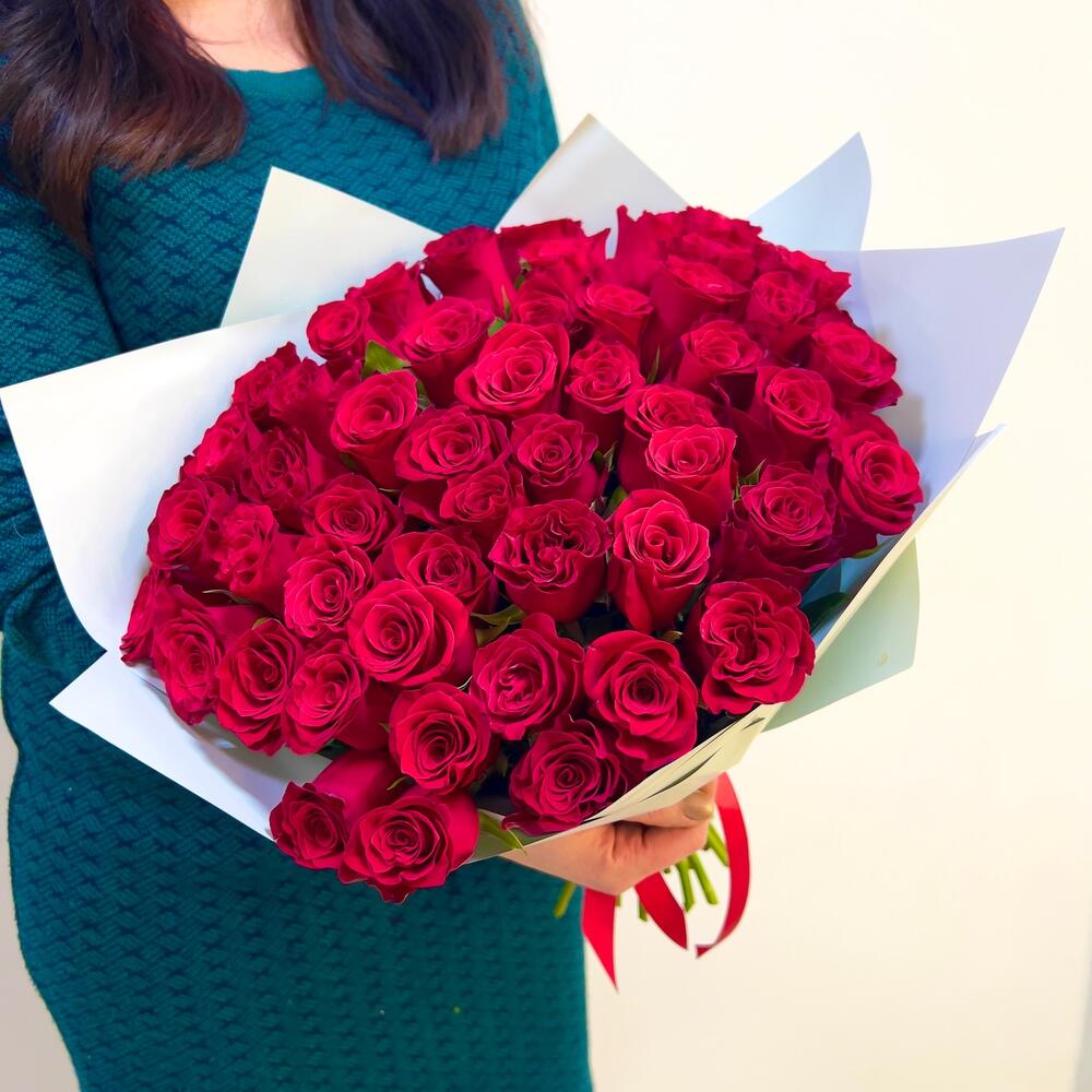 Букет из 55 красных роз 40 см