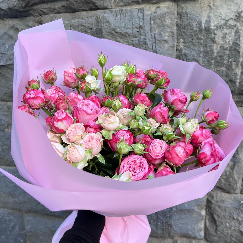 Гвоздики, Кустовые розы, Лизиантусы, Пионовидные розы, Розы