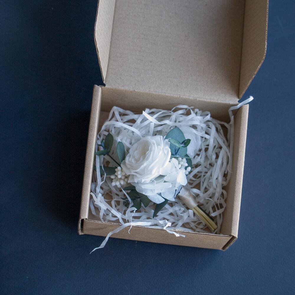 стабилизированная пионовидная роза – 17 шт.Эвкалипт – 20 шт.гортензия стабилизированная – 1 шт.