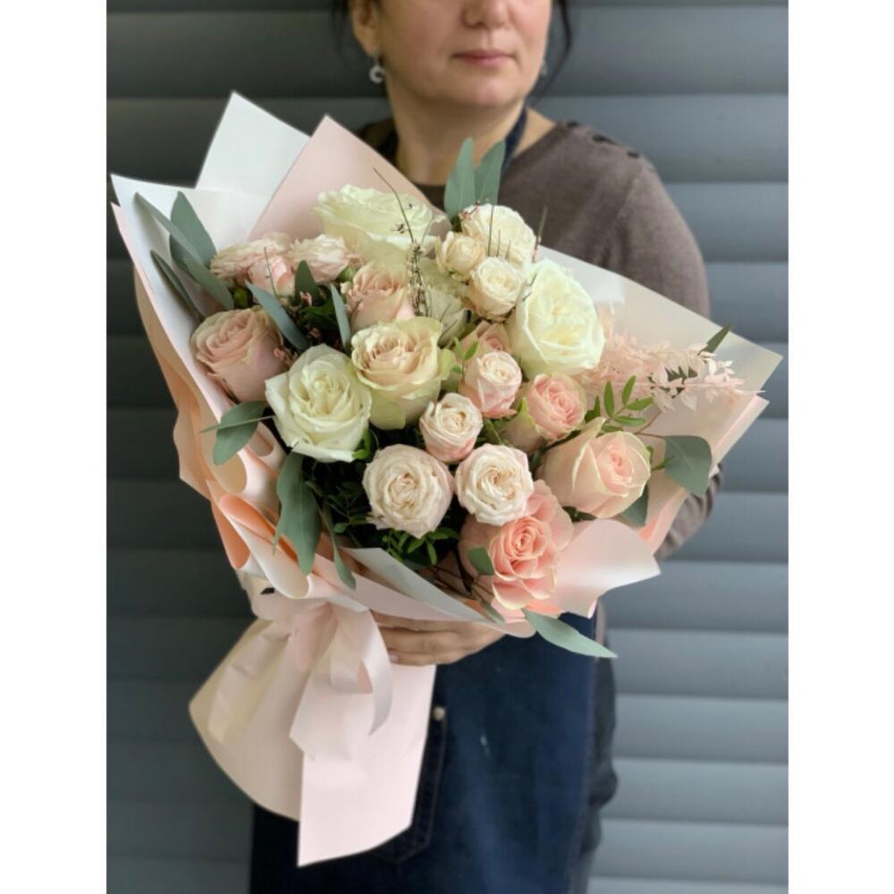 Гвоздики, Кустовые розы, Пионовидные розы, Розы