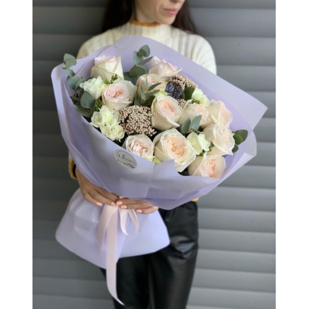 Альстромерии, Кустовые розы, Лизиантусы, Пионовидные розы, Розы, Ромашки