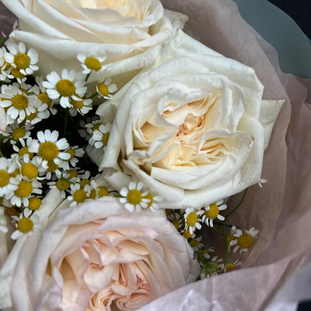 Категории: Пионовидные розы, Розы, Ромашки