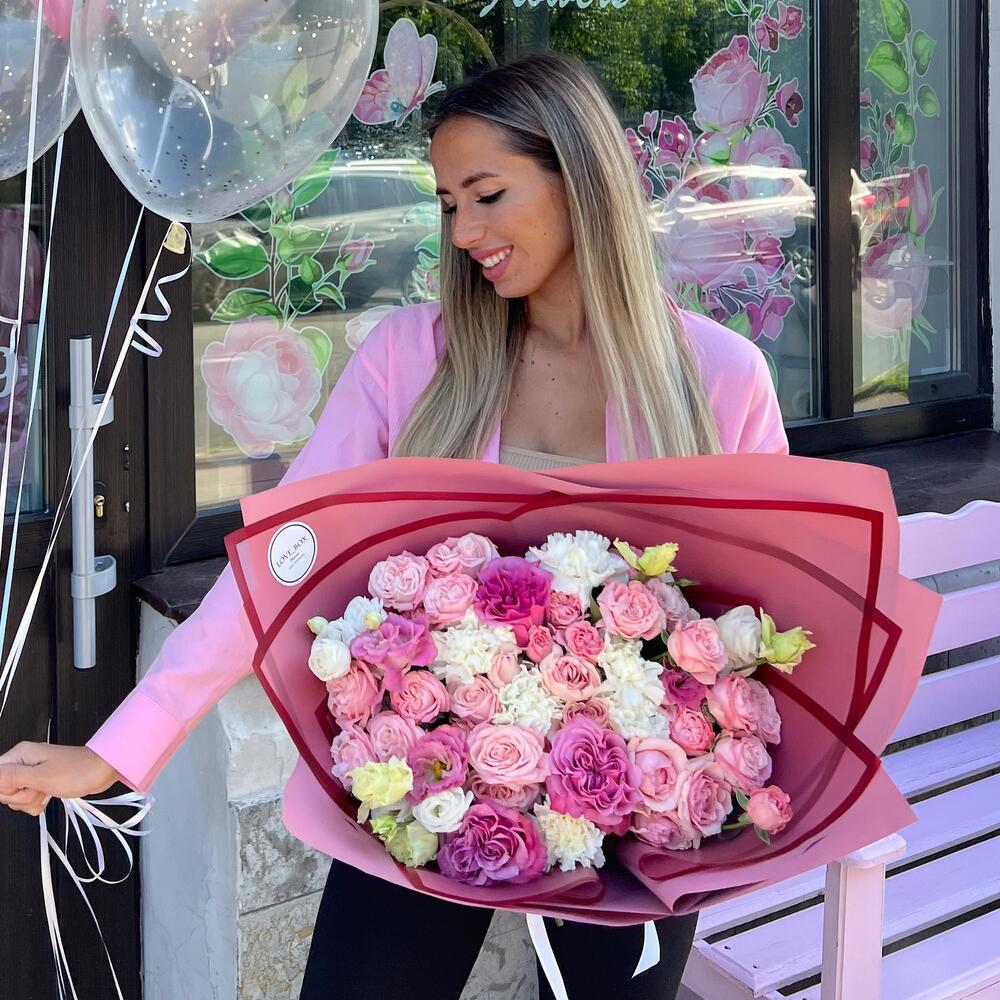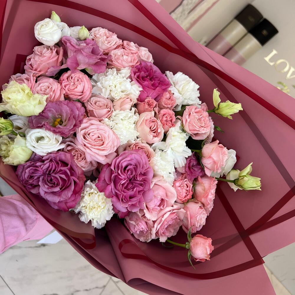 Категорий: Гвоздики, Кустовые розы, Лизиантусы, Пионовидные розы, Розы