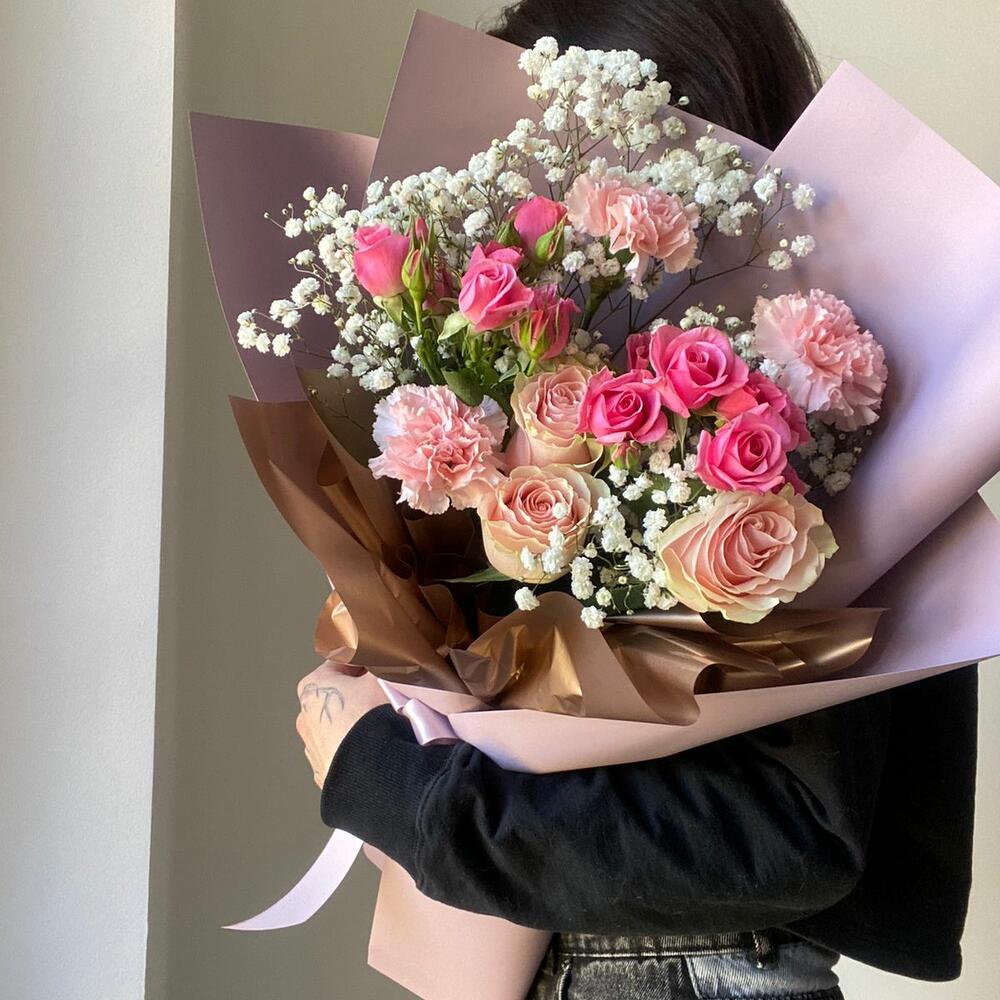 Гвоздики, Лизиантусы, Розы