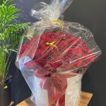 Роза – 101 шт. Коробка шляпная – 1 шт. Оазис флористический – 3 шт.