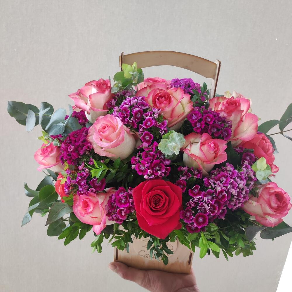 Гвоздики, Кустовые розы, Лизиантусы, Пионовидные розы, Розы