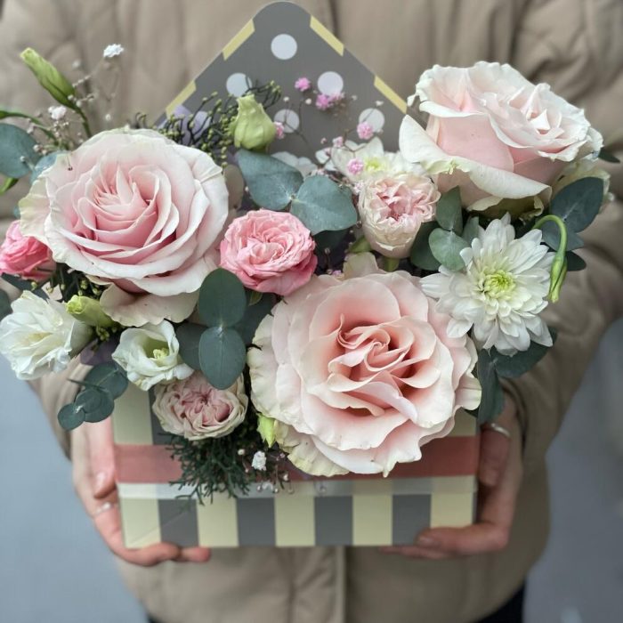 Цветочная композиция в крафтовом конверте , передаст ваши чувства , выраженные в цветах