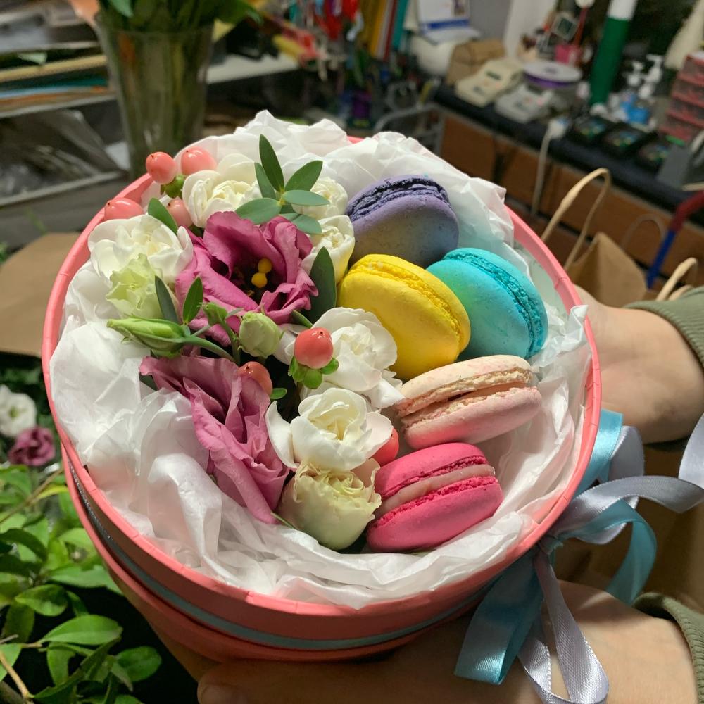 Цветы в коробке с Макарунами