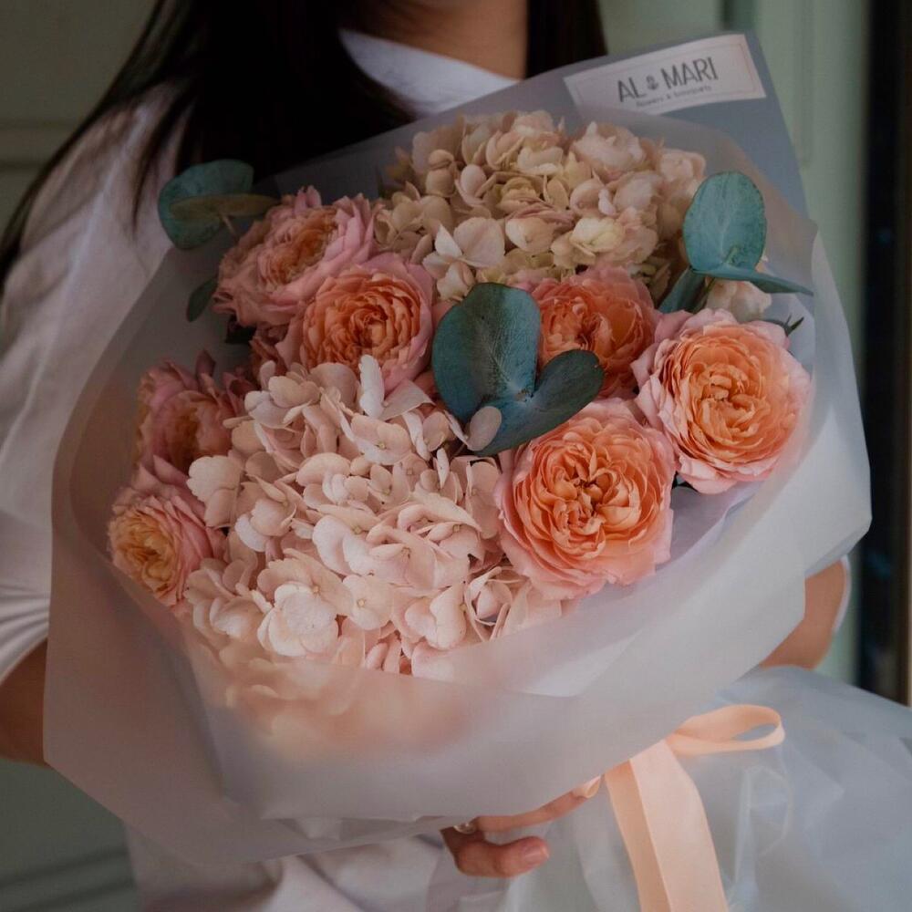 Гвоздики, Кустовые розы, Пионовидные розы, Розы