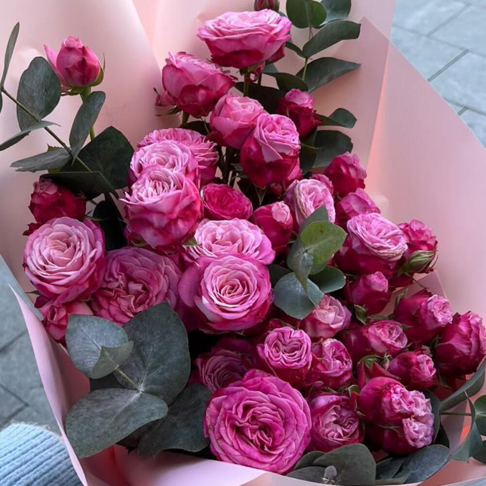 кустовые пионовидные розы ж – 13 шт. Упаковка дизайнерская – 1 шт. Открыточка с вашими пожеланиями – 1 шт. инструкция по уходу за цветами – 1 шт.