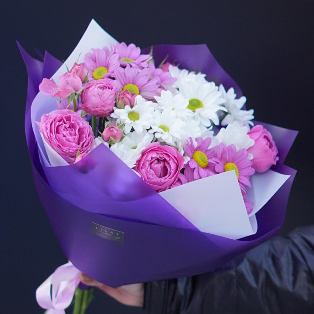 Гвоздики, Кустовые розы, Лизиантусы, Пионовидные розы, Розы