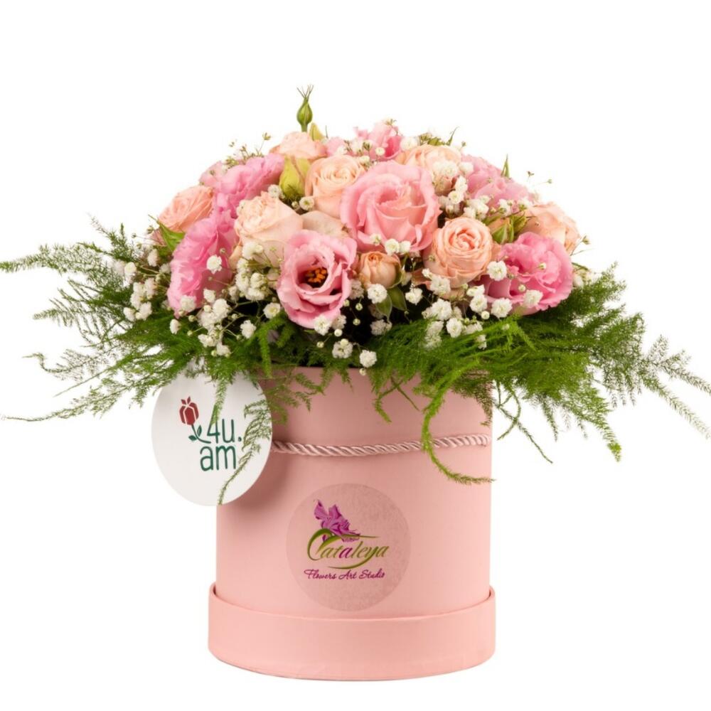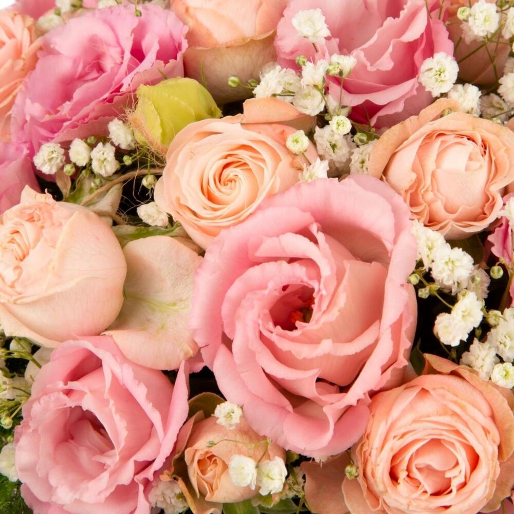 Альстромерии, Гвоздики, Кустовые розы, Лизиантусы, Розы, Хризантемы