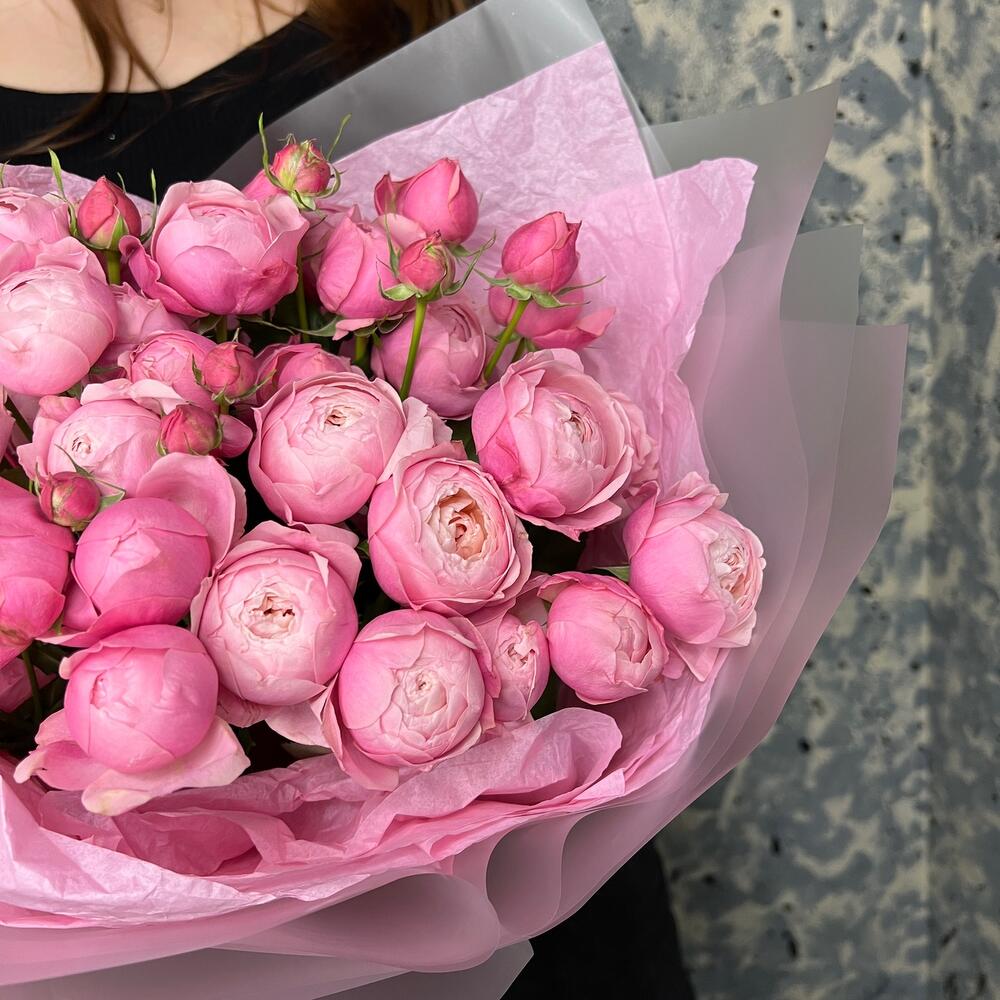 mono bouquet 146 из кустовых пионовидных роз сорта Silva Pink