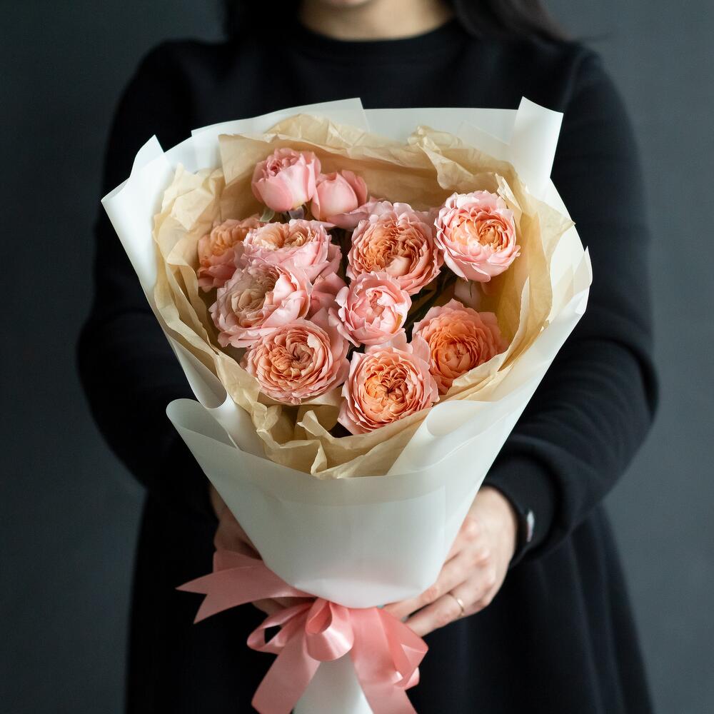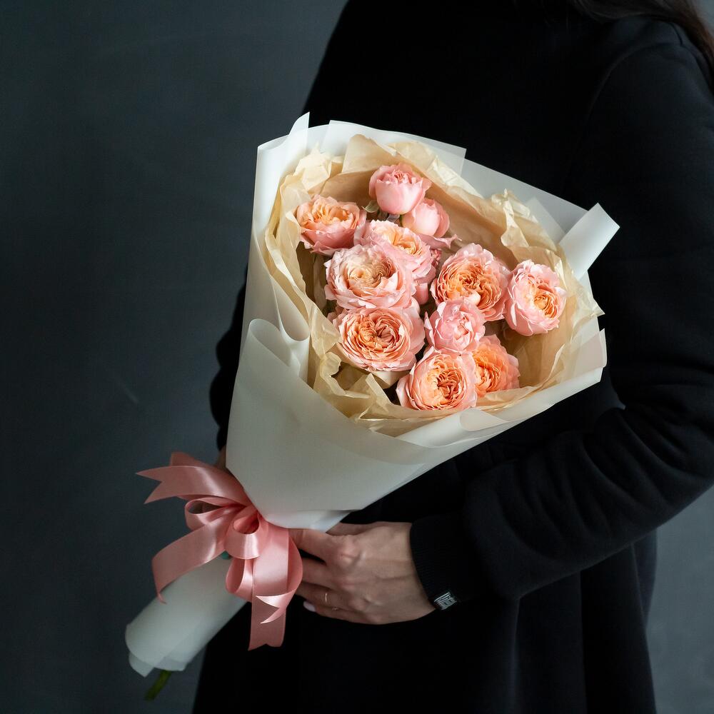 Небольшой монобукет пионовидных кустовых роз сорта Джульетта