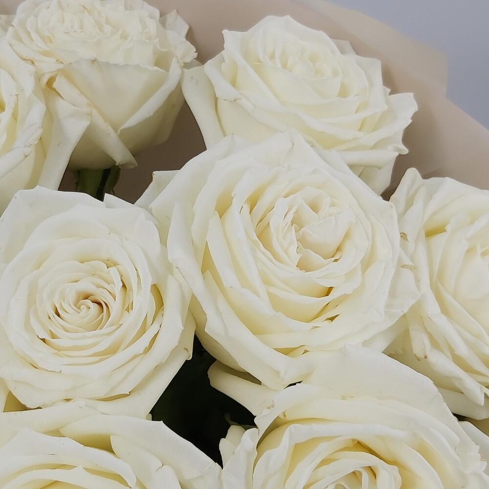 Милый букет из нежнейших белых роз в стильной упаковке. Такой букет всегда уместен и подойдёт для любого повода: День Рождения, именины, годовщина свадьбы, рождение ребенка, 8 марта, День Святого Валентина, выпускной и т.д. Можно вручить маме, сестре, подруге, коллеге, любимой.