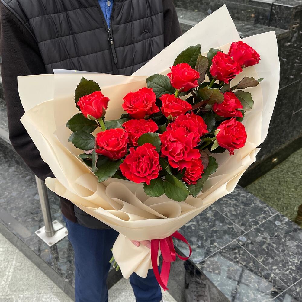 Роза Эль Торо – 15 шт.Упаковка дизайнерская – 1 шт.Лента атласная – 1 шт.
