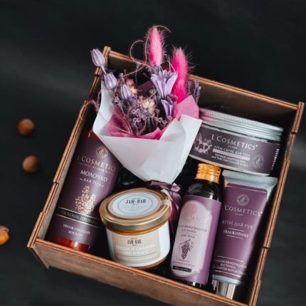 “Атлас☁️” – цветочная композиция с зефиром в деревянном ящике