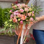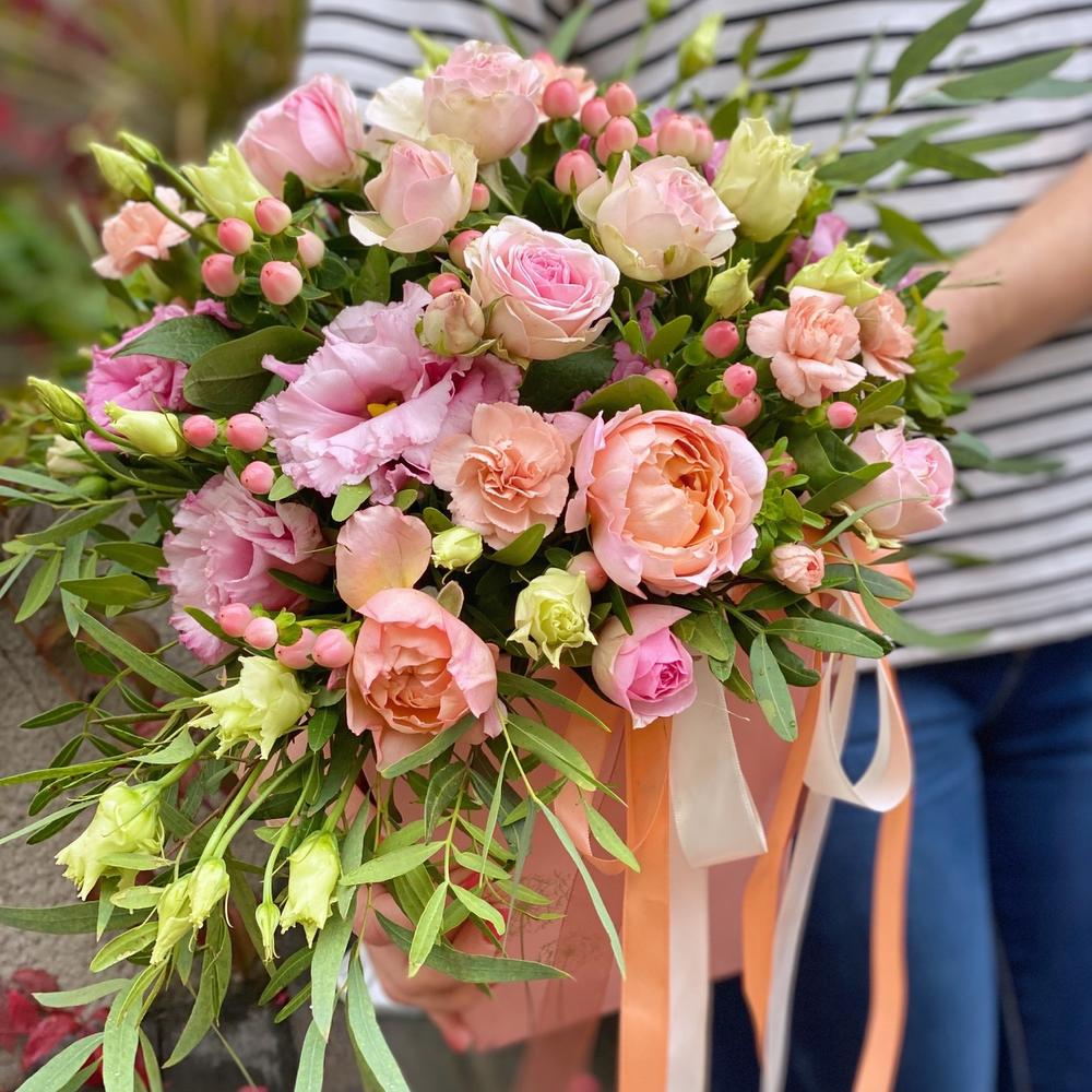 Альстромерии, Гвоздики, Кустовые розы, Лизиантусы, Розы, Хризантемы