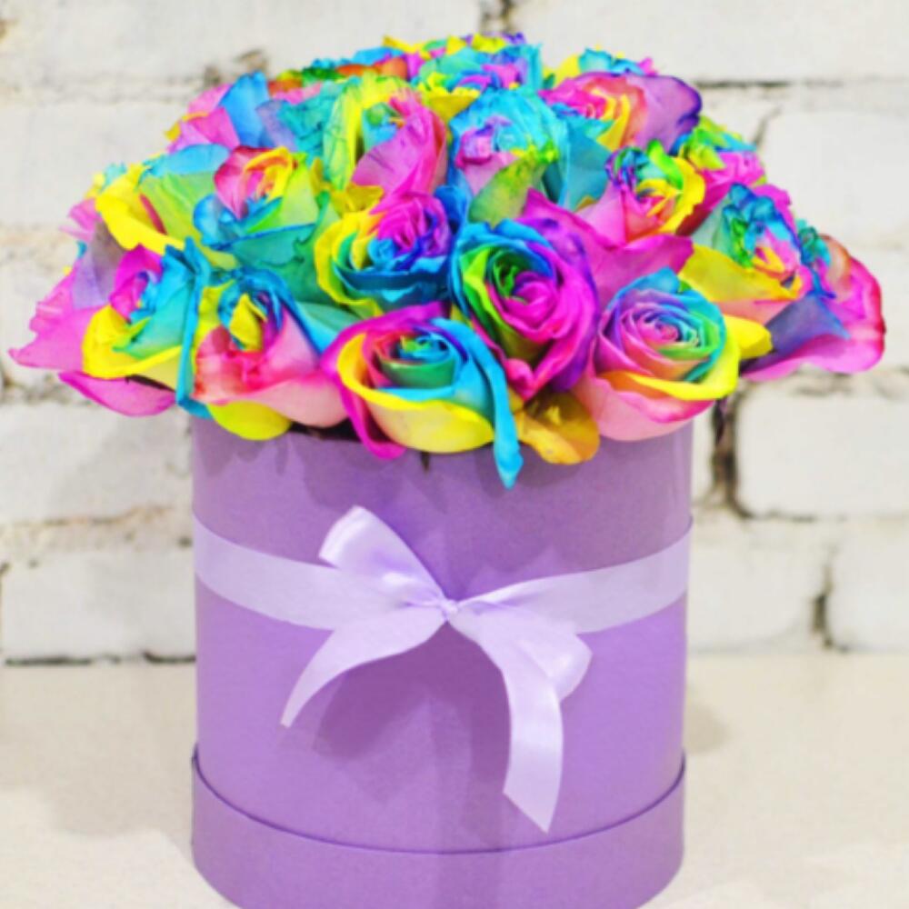 Радужные Розы в шляпной коробке