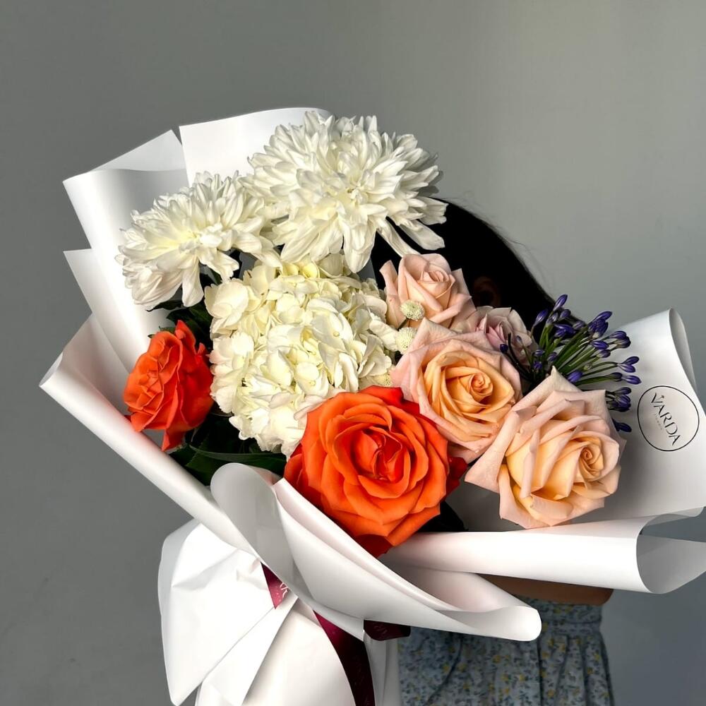 Гвоздики, Кустовые розы, Пионовидные розы, Розы